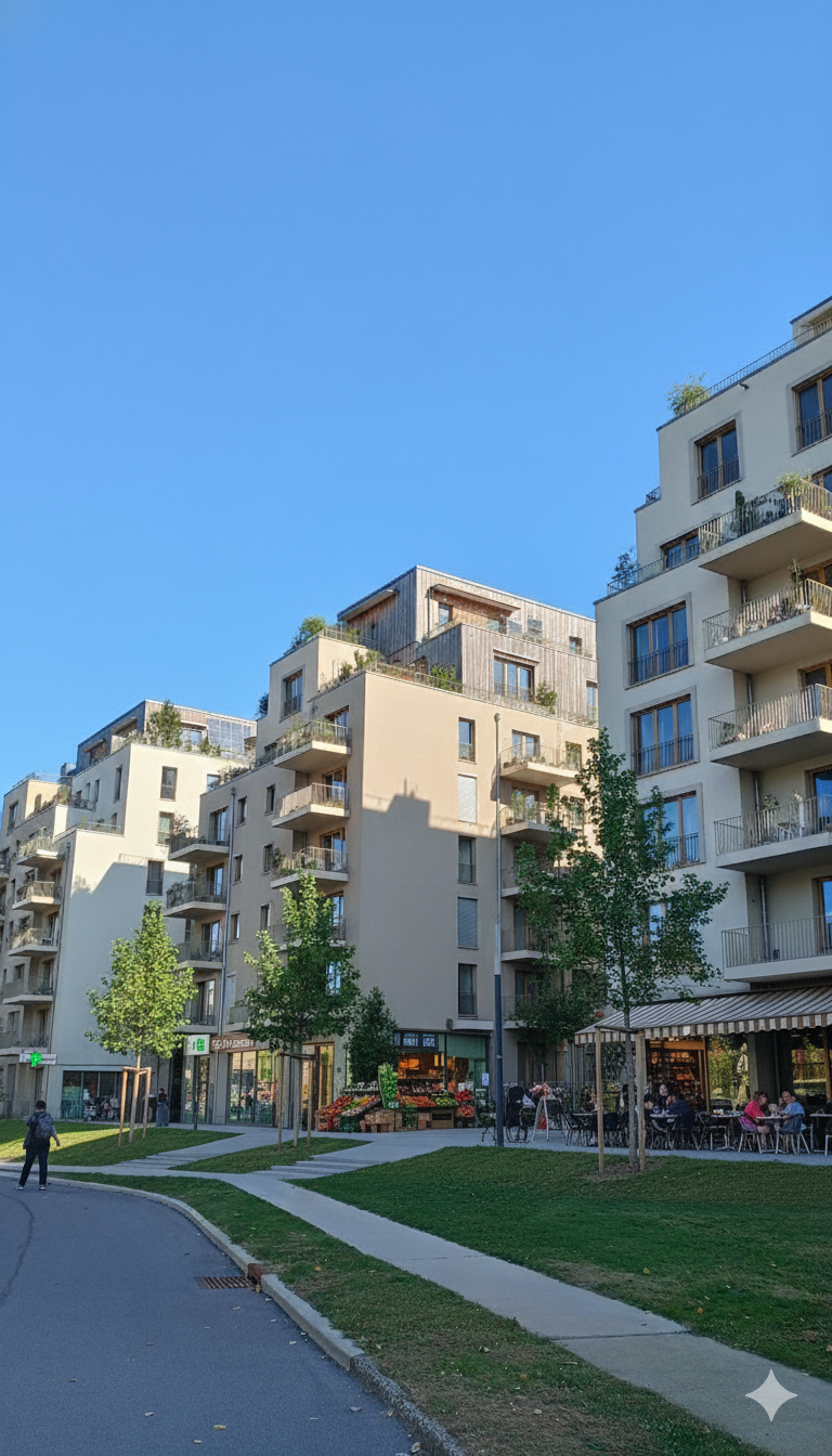 A rendering of the same area with the fence removed and new mixed-use housing (Gemini).